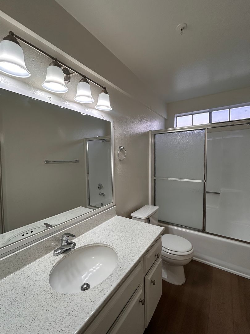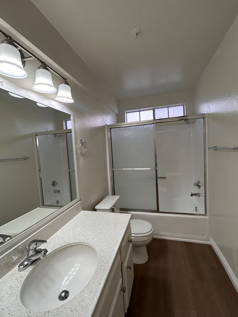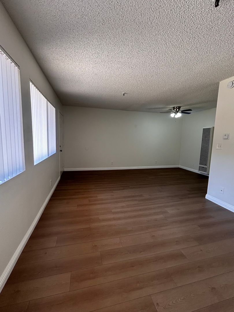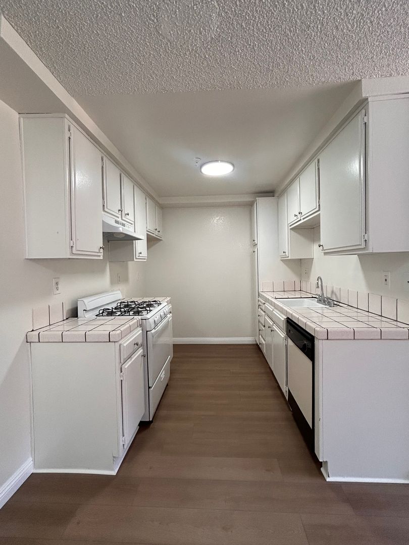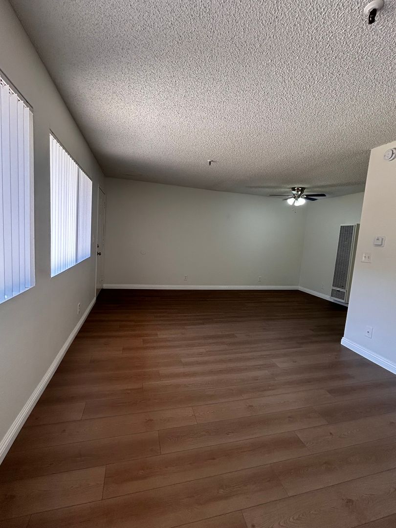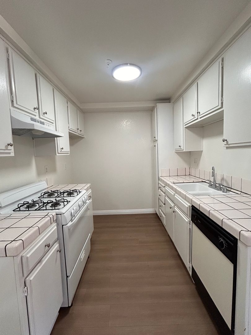 Very Clean 1 bedroom 1 bathroom in a Lovely Gated Building With Courtyard & Sitting Areas. Comes with New Carpet , Blinds, Ceiling Fans, Stove, Dishwasher, Laundry Facility, 1 Gated Parking , Non- Smoking. Tenant Pays Gas & Electric