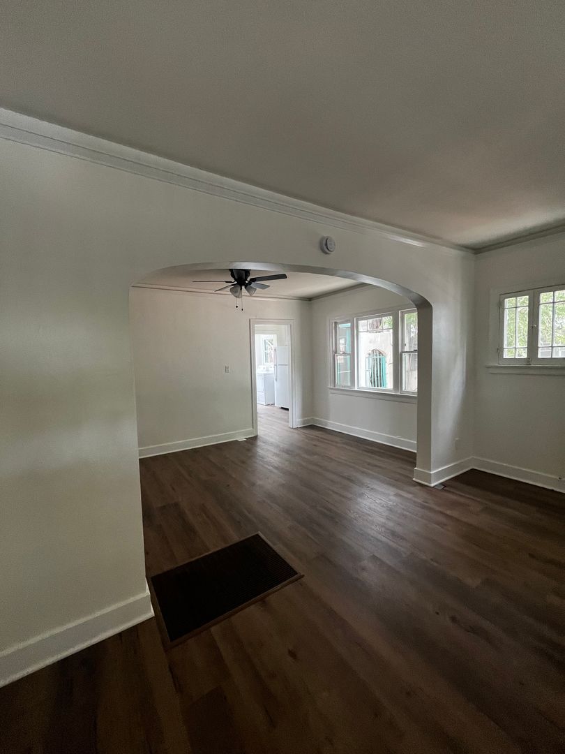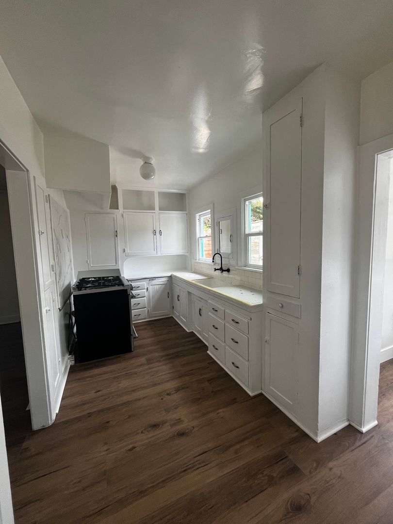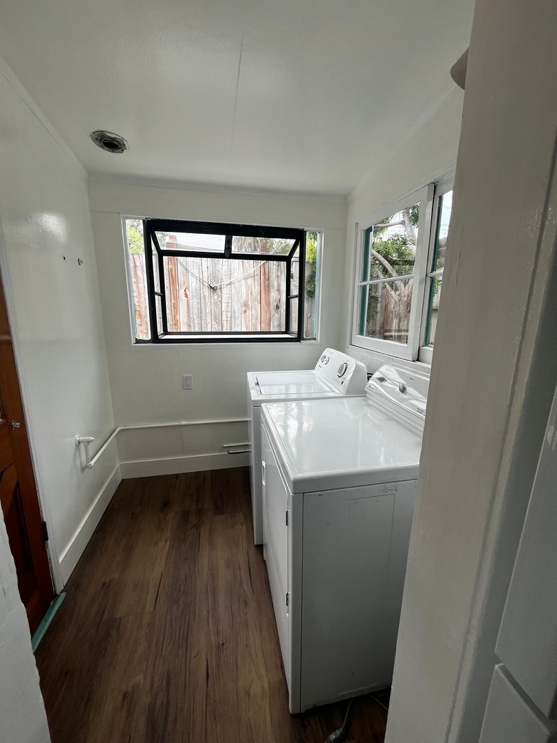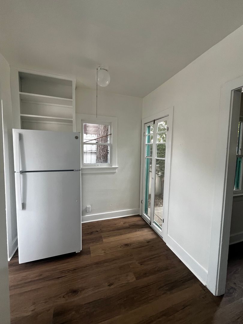 Don't miss out in this charming home in a prime location. Perfect for a cozy retreat near all the action. Available Now! 2 bedroom 1 bathroom front house. Private deck in the backyard, front porch and separate dining area. New flooring throughout the house. Laundry hook ups - Jack and Jill bathroom had been recently remodeled with new tub/shower & tile surround. Street parking only